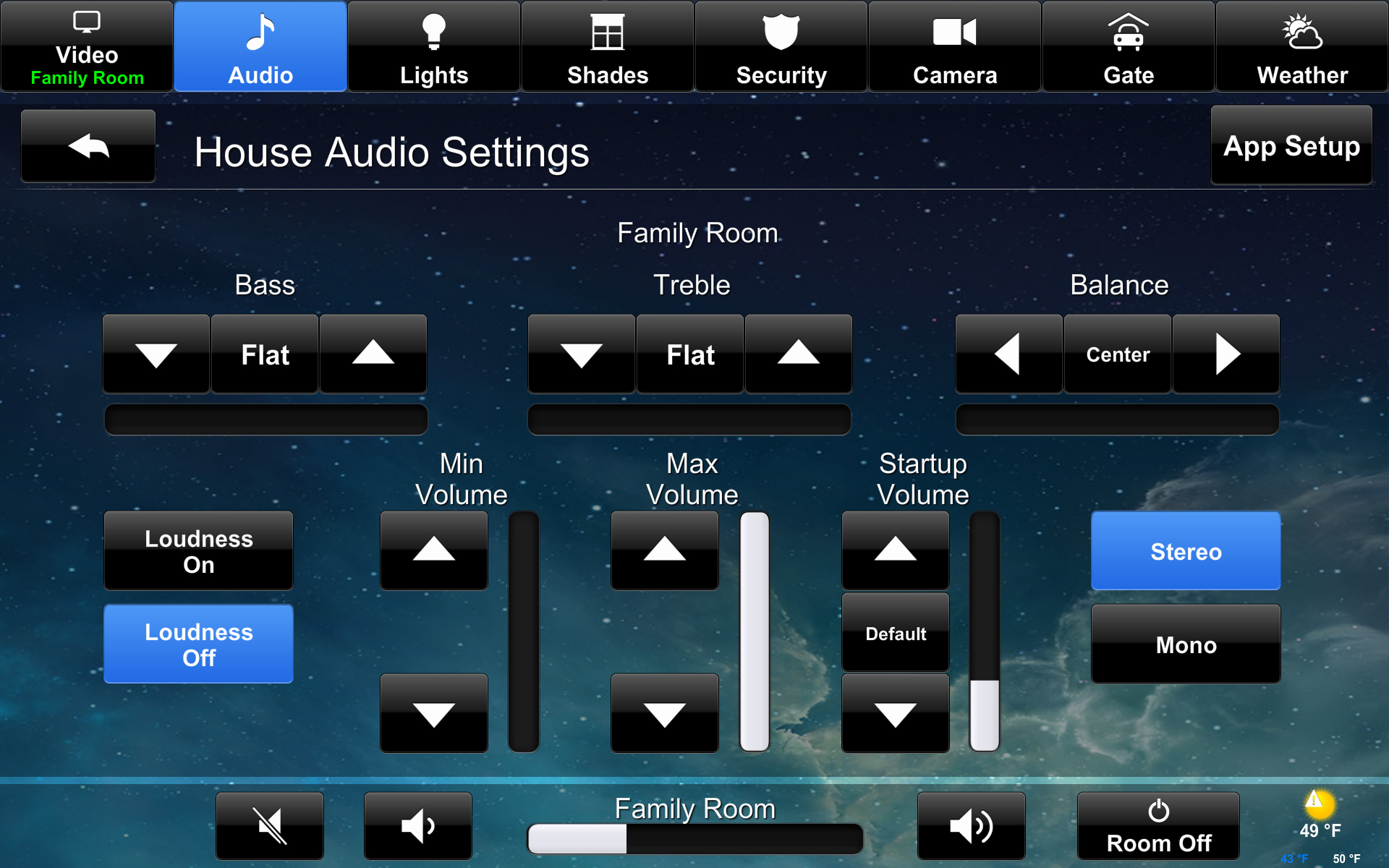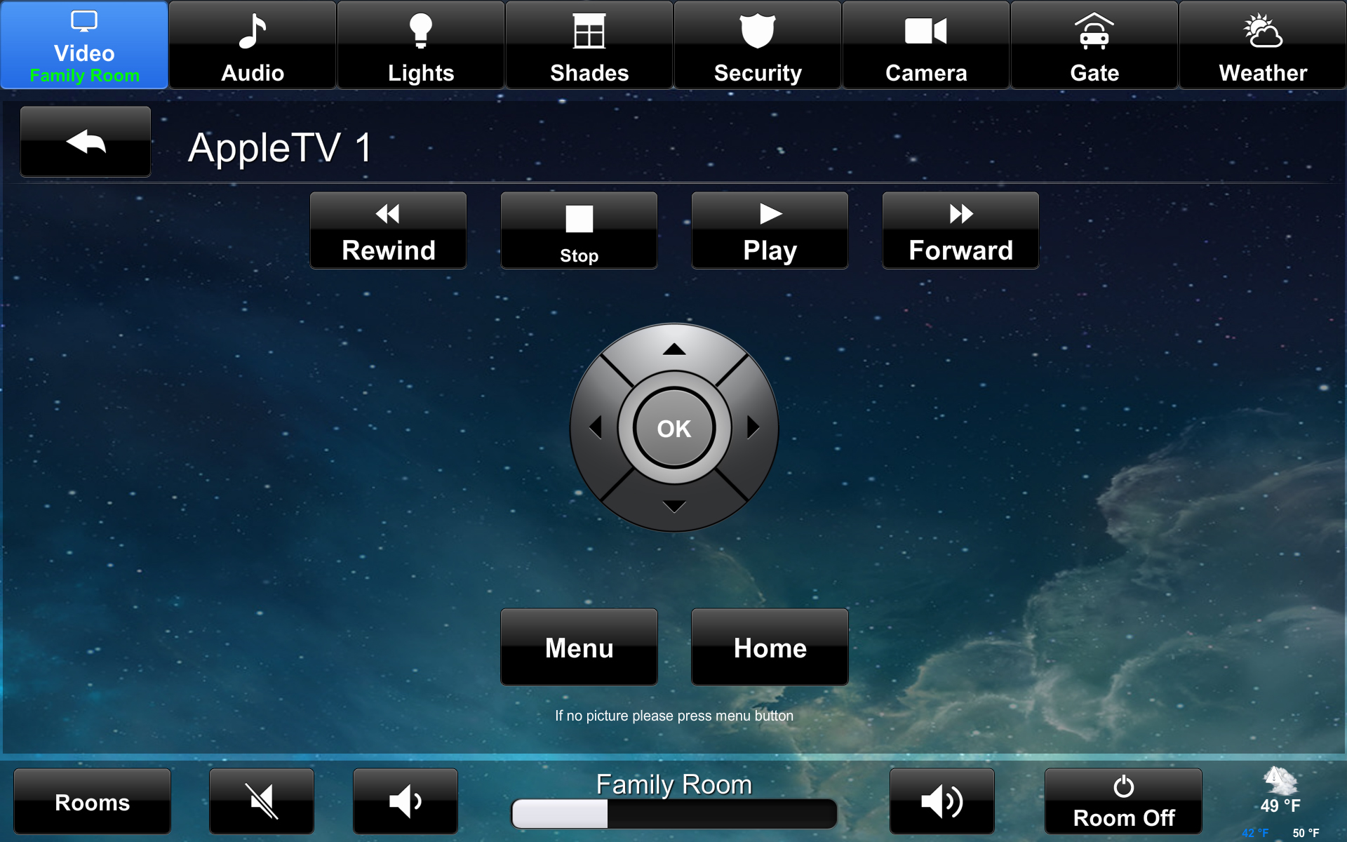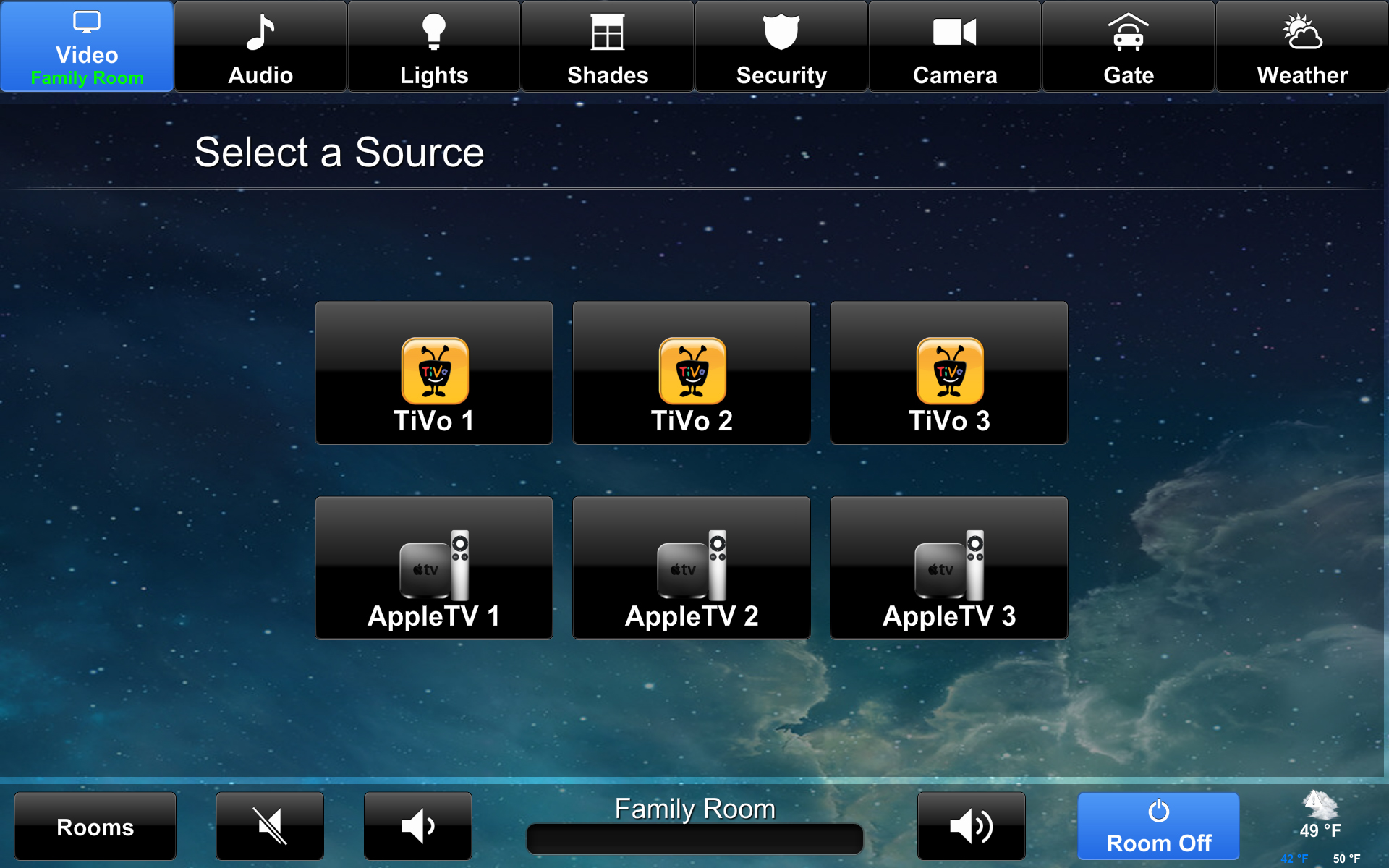 Pressing the Rooms button on bottom left allows you to select the room you want to control.